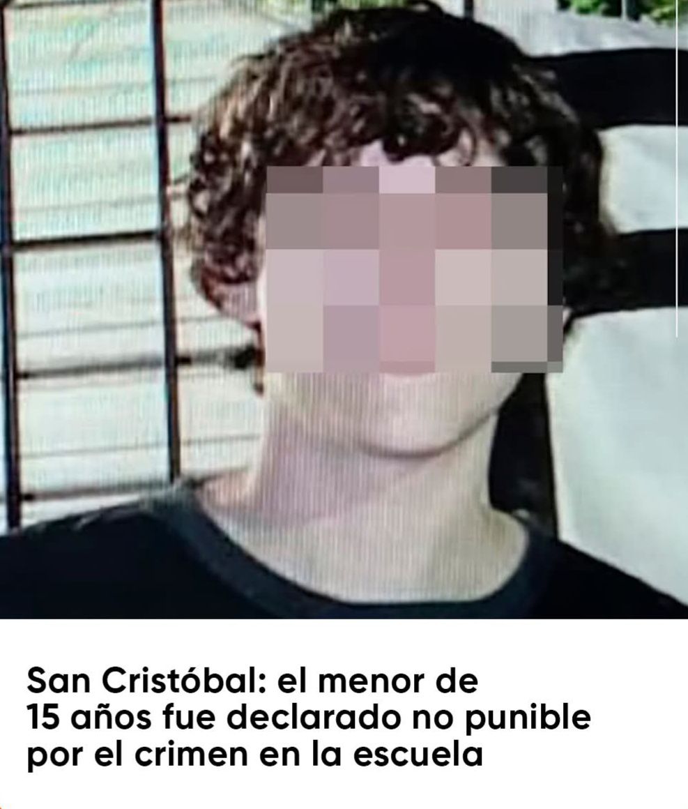 Un joven de 15 años implicado en el crimen ocurrido en la escuela de San Cristóbal fue declarado no punible por la Justicia, debido a que la ley vigente no permite juzgar ni aplicar medidas privativas de la libertad a menores de esa edad.