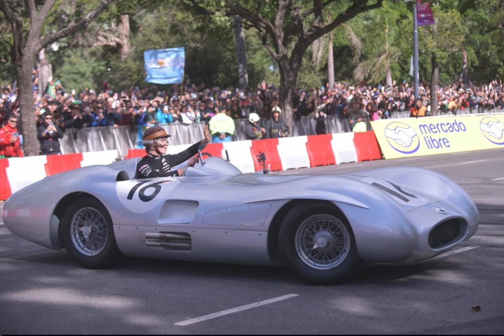 Uno de los puntos más destacados fue cuando el piloto se subió a una réplica del Mercedes-Benz W196, conocido como la histórica “Flecha de Plata” que condujo Juan Manuel Fangio.