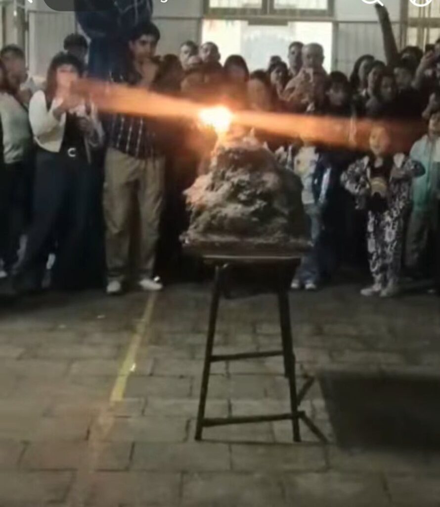 En un video subido a redes sociales, una de las alumnas autoras del experimento detalló el proceso para generar la reacción química. Según contó, dentro del barro seco que se veía en la maqueta había dos tubos de metal. En su interior contenían “azufre picado, carbón picado y una sal especial”.