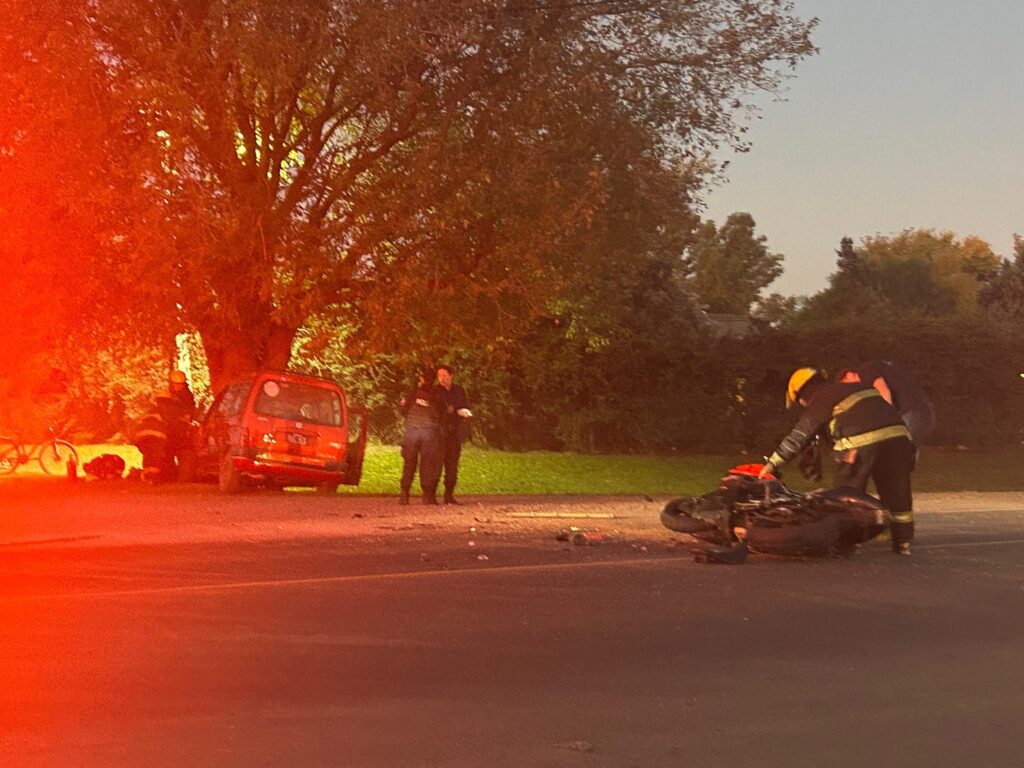 Por causas que aún se investigan, una moto de alta cilindrada y un utilitario colisionaron en el cruce, generando un fuerte impacto.