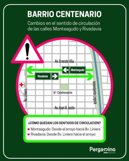 Tránsito – atención Barrio Centenario: cambian los sentidos de circulación de Monteagudo y Rivadavia